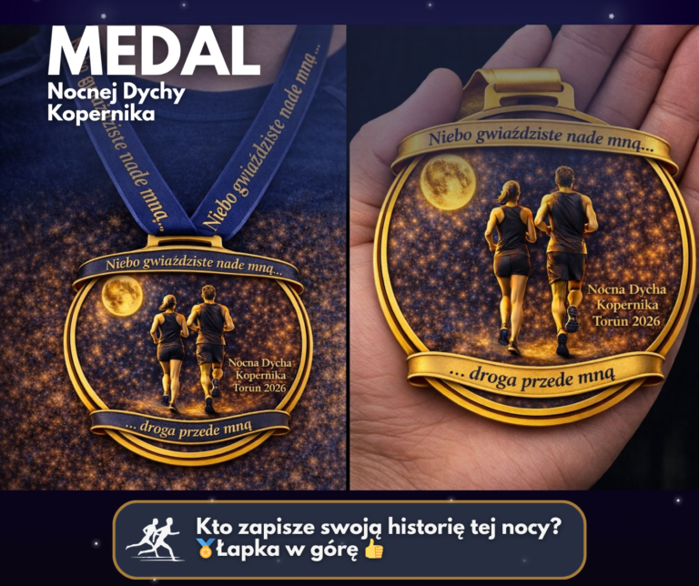Nocna Dycha Kopernika Nasze Social media: Ten medal to nie jest zwykły kawałek metalu… to historia, którą dopiero napiszesz 🌙✨ Złota oprawa jak nagroda dla tych, którzy mieli odwagę stanąć na starcie.Gwiezdne tło — bo ten bieg nie dzieje się…